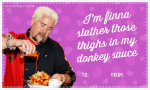 I had a dream Guy Fieri survived the nuclear apocalypse as a ghoul and roamed the world in a suit of flaming red power armor looking for the wasteland’s greatest diners drive ins and dives