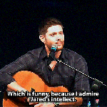 When Jared searches for the right word while answering a question about why he hasn’t directed an episode, Jensen whispers it to him. (SDCC 2015 panel)